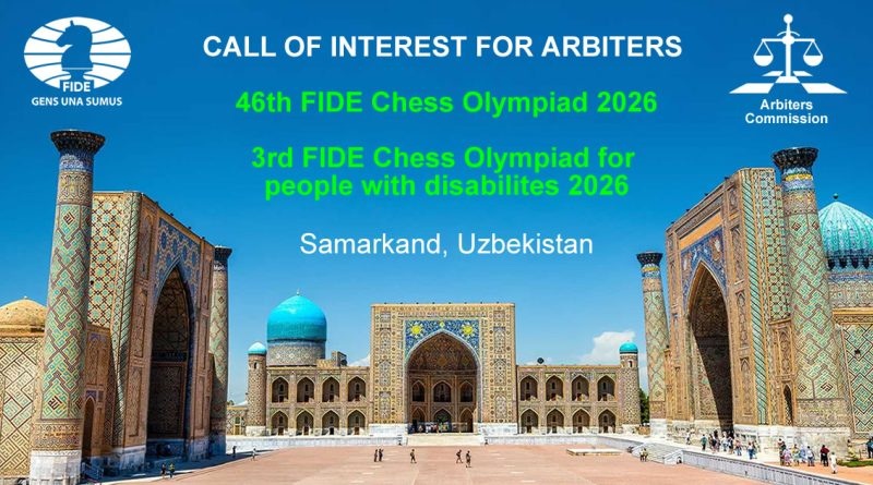 Samarcanda 2026: FIDE Convoca Árbitros para Olimpíadas de Xadrez A Comissão de Árbitros da FIDE (ARB) anunciou a abertura de...
