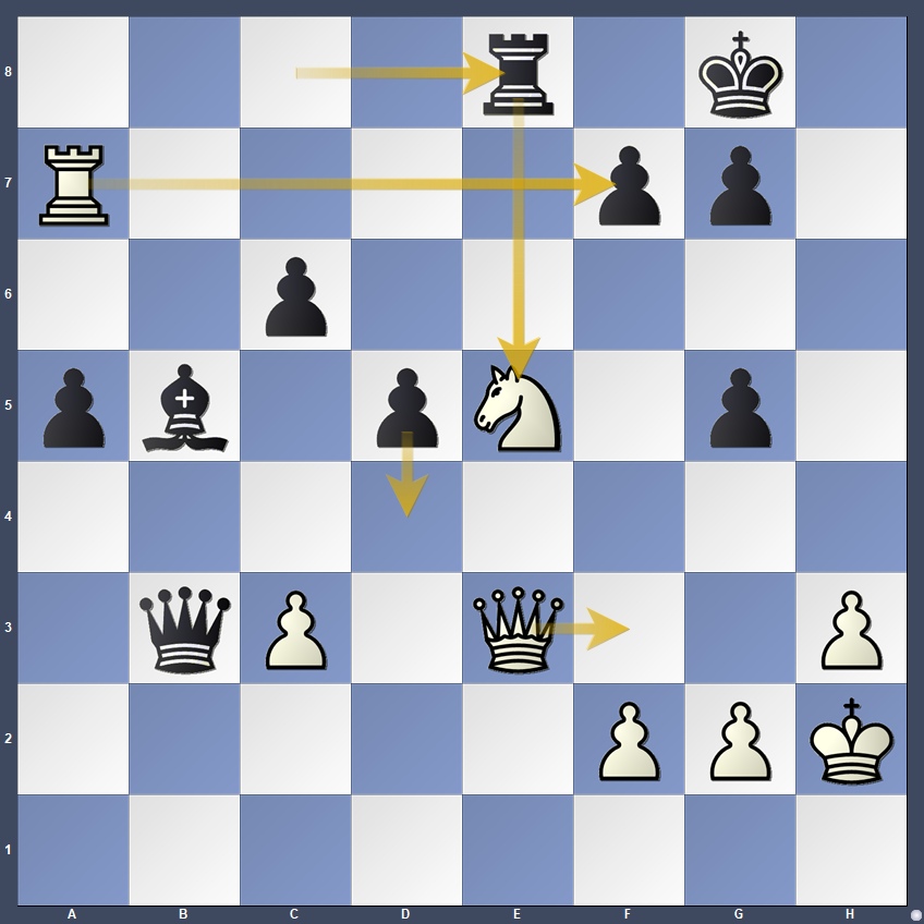 As outras partidas do torneio aberto também foram marcadas por confrontos intensos e poucas chances decisivas. Hikaru Nakamura e Wei Yi protagonizaram um embate sólido na linha principal da Abertura Catalã. Percebendo a profunda preparação de seu oponente, Nakamura optou por forçar uma repetição tripla em um estágio inicial, mas não sem antes ponderar suas opções por quase quarenta minutos, uma decisão calculada para conservar energia e proteger sua posição no torneio. Anish Giri, buscando uma oportunidade para alcançar o líder, tentou inovar na partida contra Andrey Esipenko, optando por 11.Qa4 em vez do 11.Rc1. No entanto, a técnica defensiva impecável de Esipenko em um final de peão isolado com peças menores impediu que Giri gerasse chances reais de vitória, culminando em um empate em 43 lances, um exemplo de defesa exemplar. O maior lamento da rodada, no entanto, coube a R Praggnanandhaa, que alcançou uma posição vitoriosa contra Matthias Bluebaum, mas falhou em convertê-la sob pressão de tempo. A jogada crítica, 34.Qf3, não foi a ideal; a continuação decisiva seria 34.Rxf7!, que levaria a um ataque avassalador e à vitória, mas foi perdida no calor do momento.