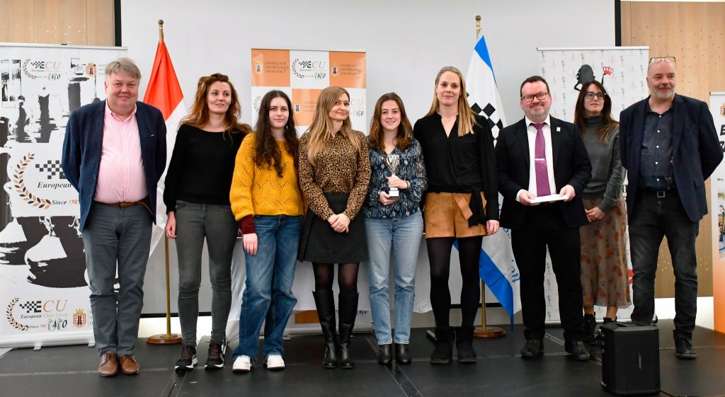 A cerimônia de encerramento ocorreu na noite de ontem, com a presença de várias personalidades, incluindo o presidente da ECU, Sr. Zurab Azmaiparashvili, e outros dirigentes do xadrez europeu. Durante o evento, foram feitos discursos de congratulação às vencedoras e a entrega de prêmios especiais, como os melhores jogadores veteranos e os melhores das diversas categorias de classificação.