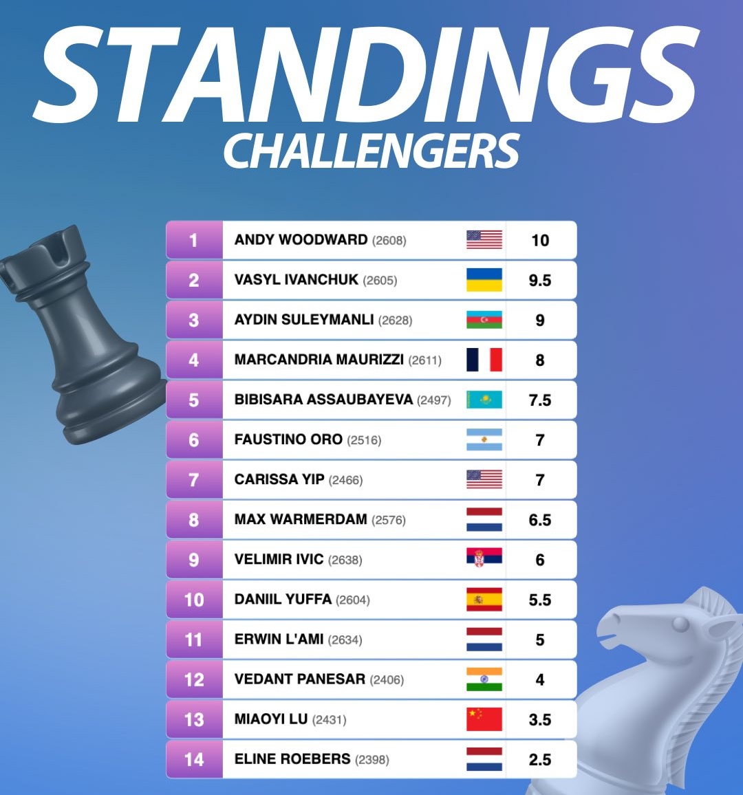 Paralelamente à competição principal, o Tata Steel Challengers também proporcionou momentos de grande emoção. Andy Woodward emergiu vitorioso após um torneio acirrado, garantindo seu lugar no Tata Steel Masters 2027. Esta promoção de talentos do Challengers para o Masters é uma tradição valorizada do torneio, assegurando uma renovação constante da elite do xadrez. Vasyl Ivanchuk e Aydin Suleymanli também estiveram na disputa pelo título do Challengers até a rodada final, sublinhando a intensidade da competição.