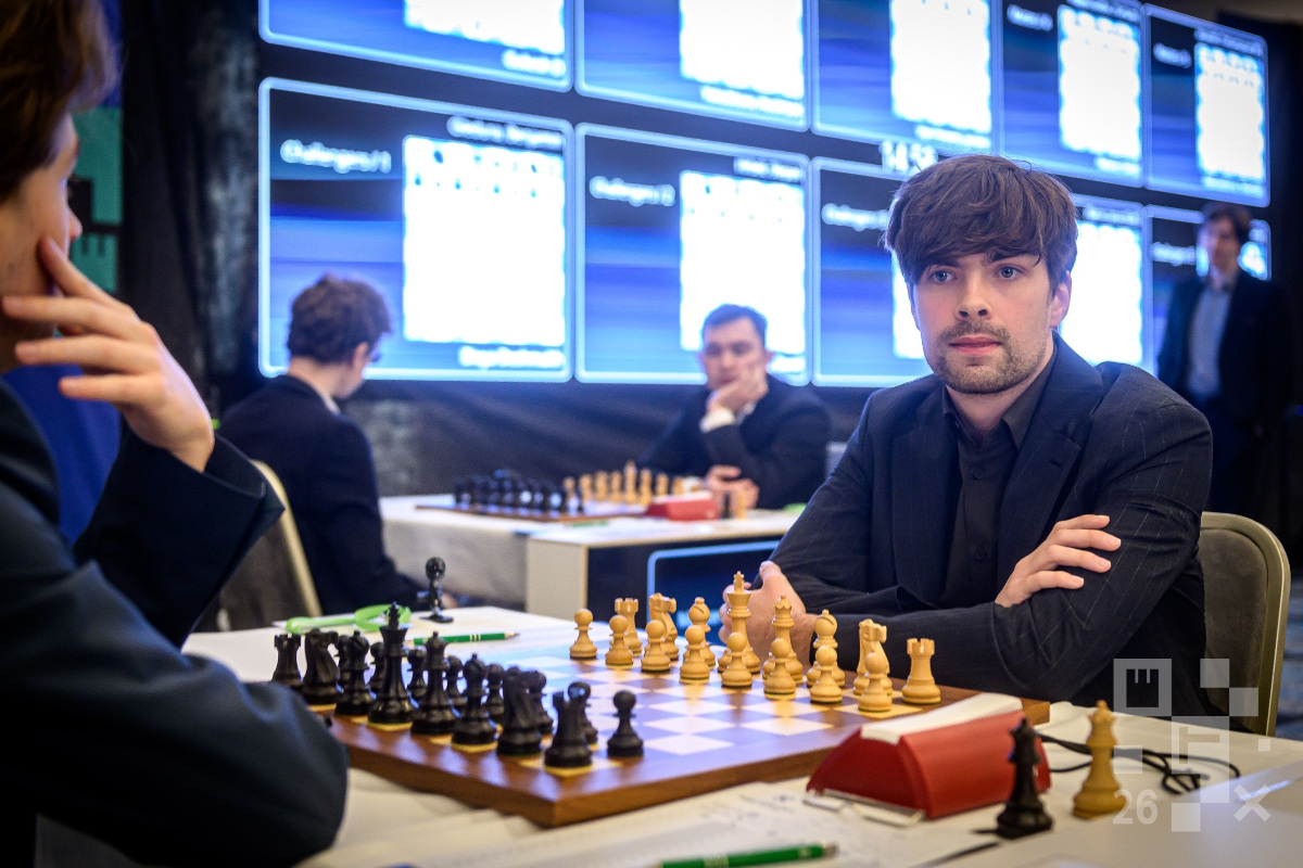 O prestigiado Festival de Xadrez de Praga presenciou um início turbulento para Vincent Keymer, que sucumbiu a Jorden van Foreest na primeira rodada do torneio. Em um confronto recheado de emoções, Keymer, após uma abertura comprometida, não conseguiu identificar um contra-ataque crucial que poderia ter mudado o rumo da partida. Esta foi apenas uma das emocionantes batalhas que marcaram a estreia do torneio na capital tcheca, com quatro das cinco partidas resultando em vitórias decisivas. Apenas o campeão mundial Gukesh Dommaraju e Hans Niemann assinaram um empate, curiosamente a partida mais longa da rodada, prolongando-se por horas de intensa disputa. | Foto: Petr Vrabec / Prague Chess Festival