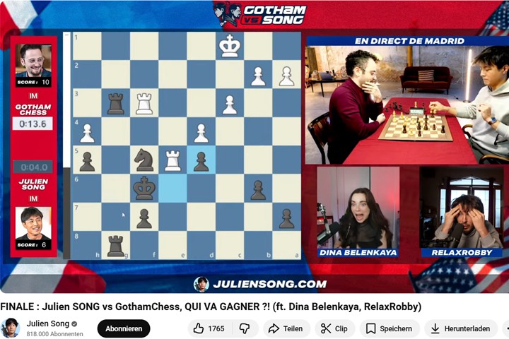 A guinada decisiva, no entanto, veio com o xadrez blitz. Nesta modalidade, onde a rapidez de raciocínio e a intuição tática são primordiais, Gotham Chess consolidou sua superioridade de forma avassaladora. Ele assegurou seis vitórias convincentes, enquanto Julien Song conseguiu apenas duas. O sistema de pontuação do torneio, que favorecia as vitórias nas modalidades rápidas, amplificou o impacto do desempenho de Rozman, culminando no placar final de 14 a 8.