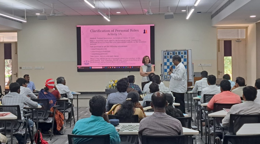Muito mais do que ensinar as regras do jogo, o curso aprofundou-se no potencial do xadrez como um instrumento didático para enriquecer habilidades acadêmicas, estimular o pensamento crítico e fomentar competências para a vida. Sob a orientação especializada da WIM Rita Atkins e do Dr. Joseph Ebenezer, os participantes exploraram, através de sessões interativas e demonstrações práticas, como o xadrez aprimora a resolução de problemas, a capacidade de tomada de decisões e a agilidade mental, tornando o aprendizado uma experiência envolvente e significativa. A iniciativa foi calorosamente recebida pelo Dr. P. Wilson, diretor do Madras Christian College, que enfatizou o poder transformador de abordagens educacionais inovadoras. Um marco importante foi o lançamento das edições em tâmil e inglês do Livro do Curso FIDE Xadrez na Educação, adaptando um currículo globalmente reconhecido às escolas locais de Tamil Nadu.
